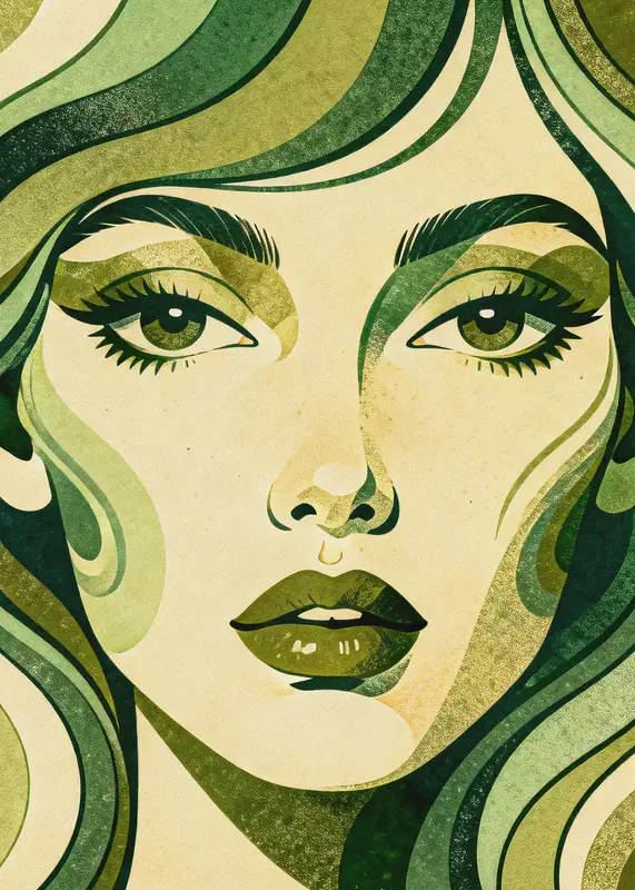 70s PSYCHEDELISCH Groen Retro Gezicht Abstract Portret posters & art prints door Mingkly Habibi – Premium Poster – 50×70 Offre Spéciale