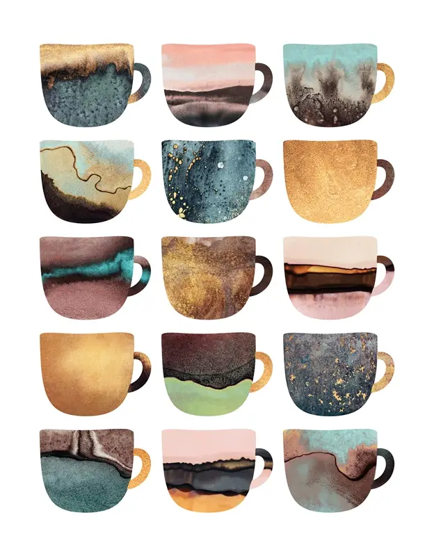 Aardse koffiekopjes #2231932 posters & art prints door Elisabeth Fredriksson – Premium Poster – 50×70 Authentique