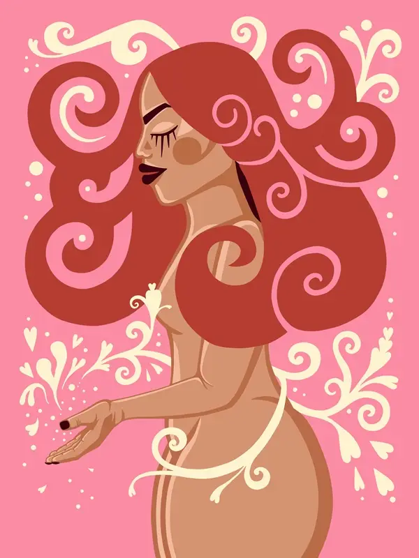 Woman with love message, Pink posters & art prints door Therese Ekman – Premium Poster – 50×70 Petit Prix