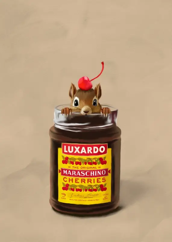 Zoete verrassing: Een Eekhoorn’s Vreugde met Maraschinokersen posters & art prints door Emil Jespersen – Premium Poster – 50×70 Offre Limitée
