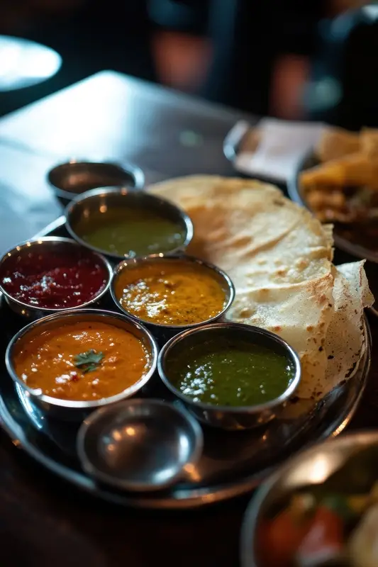 Zuid-Indiase feestmaal: dosa’s en kleurrijke chutneys posters & art prints door Pia Srit – Premium Poster – 50×70 Dernier Modèle