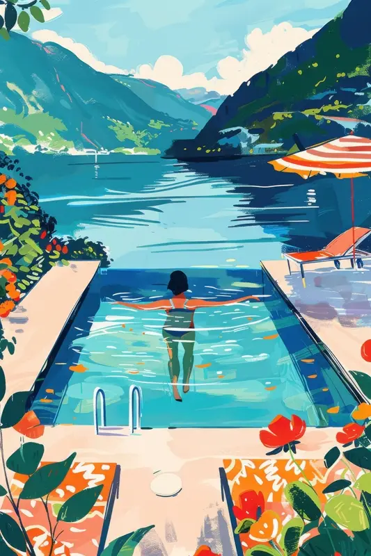 Zwemmen over de Alpen posters & art prints door Natalia Ayu – Premium Poster – 50×70 Retour Gratuit